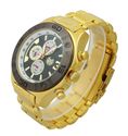| | Kronwerk AQ202823G Gold Tone Steel Bracelet Multifunction Day Date Mens WatchKronwerk watches are intended for use by the discerning man to look his best at all occasions. These classy Euro Design watches are made to be "statement pieces" at both casual and formal functions where a distinguished image is of vital importance. The watches are made with high quality, Japanese quartz movements, multifunction watch dials, scratch-resistant mineral glass and corrosion resistant metal cases. These big face watches come in adjustable metal bracelets or leather straps at affordable prices. Watch Specifications