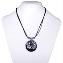 | | Black Drop Pendant Necklace Austrian Crystal in Siver Filigree Black Leather Cord Triple RoundJewelry Specifications