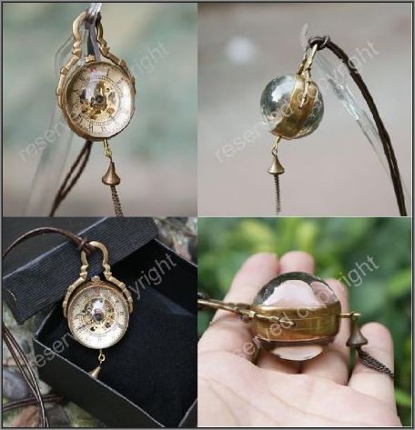 Crystal Ball Pocket Watch With Brown Leather Cord