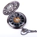 | | Skeleton Pocket Watch With Mechanical Movement Hand Wind Web Pattern Black Dial Metal Chain WatchWatch Specifications