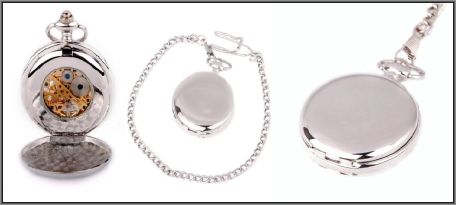 | | ShoppeWatch Skeleton Pocket Watch Mechanical Movement Hand Wind Full Hunter Silver Tone Engravable - PW20Watch Specifications