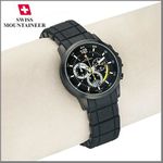 | | Black Chronograph Watch Swiss Mountaineer SM1390For a well-built and dependable black chronograph watch the SM1390 Swiss Mountaineer is certainly one of the best Swiss made models available at a very affordable price. The black stainless steel watch casing with its black dial is matched perfectly with a rubber fortified stainless steel watchband for an exceptionally pleasing Swiss made watch. Featuring a chronograph and big date display this watch satisfies both form and function. With the renowned dependability of watches from Switzerland and an eye-catching appearance, this fine men’s watch is a great gift for anyone including you.