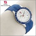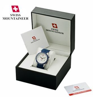 | | Swiss Mountaineer Blue ChronoSport Rubber Strap WatchFor a truly unique sports wrist watch that can not only handle an active lifestyle but also look great throughout, the Swiss Mountaineer SM1344 is the perfect watch. This Swiss made chronograph designer watch couples a blue rubber strap with a solid stainless steel case and buckle for a timepiece that is just as sporty on the outside as it is on the inside. The Army precision of Swiss movement will keep the watch accurate no matter how active you get and the watch is water resistant up to 100 meters for whenever the wearer gets caught in the elements. No matter what your sport or if you just want the look of the athletic lifestyle this watch will fit your needs.